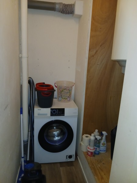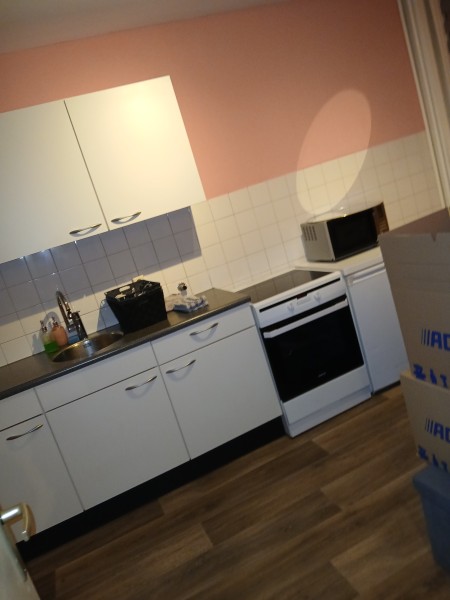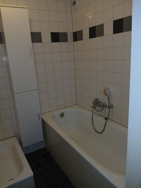 Het is een ruime appartement, met gesloten keuken, 1 hele grote woonkamer, 2 kleine slaapkamers, badkamer met een douche en bad, wasruimte