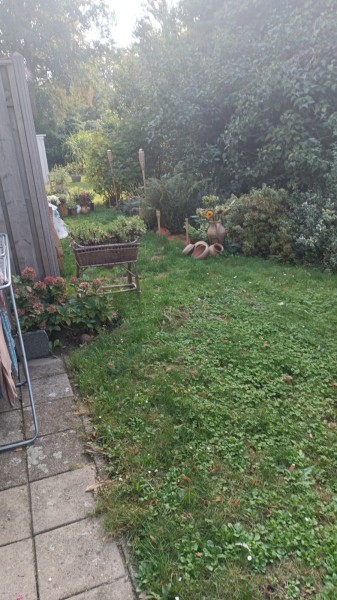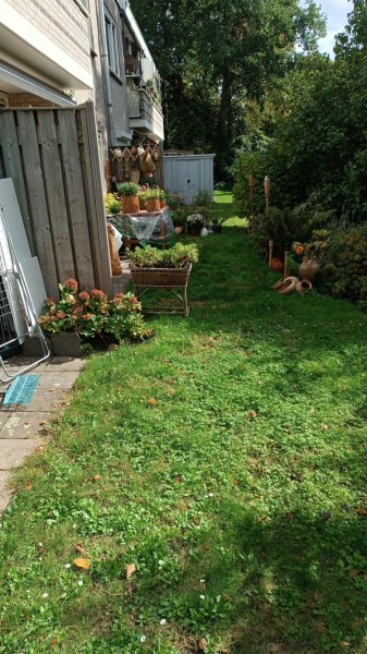 beneden woning met open tuin geen omheining 1 grote slaapkamer 1 kleine . ruime woonkamer . keuken en kleine berging van 3 vierkante meter .. plattegrond bij foto's