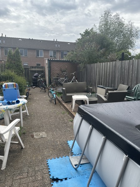 Met een achtertuin en voortuin Heel goed