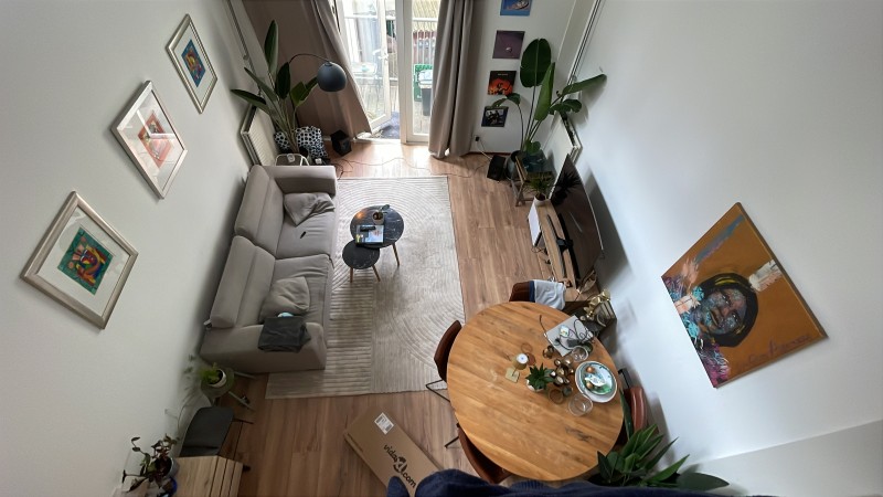 Woning met enorme vide, veel natuurlijk licht, in hartje centrum. Erg ruim en met een binnenbalkon.