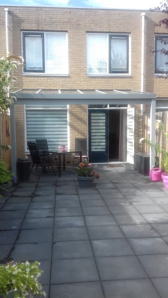 4 kamer eengezinswoning, 3 slaapkamers, 1 grote en 2 kleine, voortuin en achter tuin (4,50/10) van 8.30 t/m 5 uur zon. 5 minuten lopen van het winkelcentrum en bus en trein station. Keuken apart en ook eetkamer. Leuke woning.