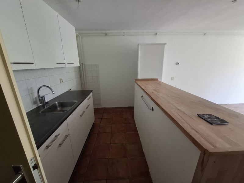 Maisonette woning op de eerste etage. Entree, opbergkast en tweede slaapkamer (8 m2) zijn op begane grond. Op de eerste etage is een grote slaapkamer (13 m2), een nette keuken, badkamer, aparte toilet, nog een opbergruimte, woonkamer en een ruim balkon van 1.25 x 4 m. Dichtbij winkelcentrum Kronenburg