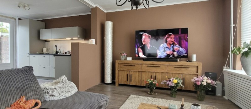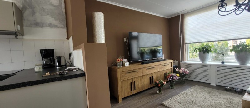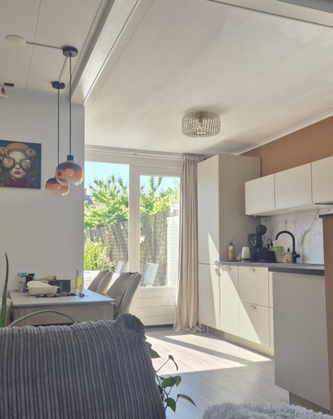 Knus huis, nieuwe keuken,openslaande tuindeuren naar terras, berging, boven kleine doucheruimte, 2 ruime en 1 kleine slaapkamer. Grote oprit, grote mooi aangelegde tuin met tuinhuis en schuurtje voor fiets en tuingereedschap.