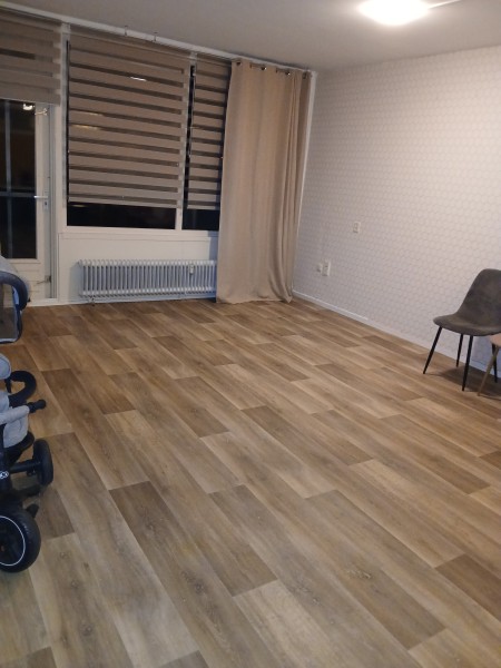 Het is een ruime appartement, met gesloten keuken, 1 hele grote woonkamer, 2 kleine slaapkamers, badkamer met een douche en bad, wasruimte