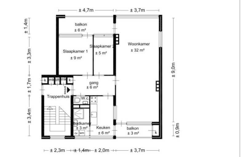 Appartement op de 2e verdieping, voorzien van twee balkons, een nette keuken en douche ruimte, twee slaapkamers en een grote doorzon woonkamer.