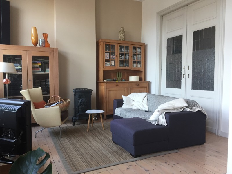 Een sfeervol Herenhuis 1907 binnenstad Den Bosch, binnenkort energielabel A, met zonnepanelen. Voldoende parkeerruimte, 5 min vanaf de binnenstad en het station, uitzicht op de Dommel, Huis heeft nog de oude indeling met 'n serre en glas in lood afscheidingsdeuren. In de keuken is een trap naar een groot dakterras op het zuiden. Voor mij wordt het huis te groot, ik wil graag wat kleiner maar wel met een (flinke) tuin, dus geen appartement. Liefst in een waterrijke omgeving in een dorp niet meer dan 30 kl. van Den Bosch.. Maar als het ‘t ‘goeie huis’ is kan het ook verder weg zijn. In den Bosch mag ook maar dan maar dan aan de rand dus het buitengebied.