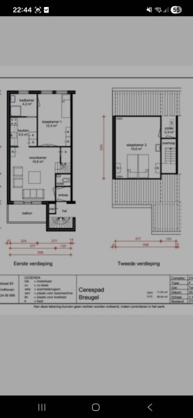Het is een maisonnette. Op verdieping 1,woonkamer en badkamer en boven heb ik van 1 slaapkamer 2 slaapkamers gemaakt. En een balkon.