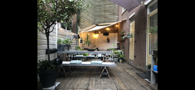 Dit fijne appartement met betonnen muren en vloeren en dubbele beglazing en cv installatie is voorzien van een heerlijke achtertuin en een berging die zowel vanuit de achtertuin als via de straatzijde is te bereiken. De Gerard Doustraat ligt in het hart van de altijd gezellige Pijp. Het appartement ligt ver genoeg van de cafés en restaurants zodat je daar geen last van hebt maar wel zo dichtbij dat je op elk moment van de dag even binnen kan lopen voor een ontbijtje, lunch of diner. Of je doet natuurlijk op een van de honderden gezellige terrassen gezellig een drankje om de hoek van je nieuwe huis. De woonkamer ligt aan de voorzijde en heeft een deur naar de keuken. Deze zit in een niet dragende muur die je eventueel eenvoudig kan afbreken waardoor je een een grote woonkamer met open keuken creëert. De badkamer is basic maar heeft een fijne douche met goede waterdruk (iets wat ik zelf altijd wel belangrijk vind). De slaapkamer bevindt zich aan de achterzijde en is ruim genoeg voor een groot tweepersoonsbed (op de foto een bed van 220x200) en kledingkasten of een bureau. In de achtergevel zit een tuindeur vanuit de slaapkamer en een deur naar de berging die zich naast de slaapkamer bevindt. Deze berging is groot genoeg voor zo’n drie fietsen of veel andere spullen. De berging is vanaf de straatkant ook te bereiken en zo kan je dus ook vanaf straat, door de berging naar de achtertuin toe. De achtertuin bevindt zich in een rustige binnentuin en heeft in de zomer van een uur of 15:30uur tot laat zon. De woning is voorzien van een CV installatie met 5 radiatoren. De woning heeft overal dubbel glas. Aan de voorzijde ligt een geveltuintje alwaar je in de ochtend en de voormiddag op een bankje heerlijk kan genieten van de zon, een koffietje en alle mensen die aan je voorbij gaan. Ik weet niet precies hoe het zit met parkeervergunningen maar ik heb er nu wel een in ieder geval. Kortom een hele fijne woning zonder geluidsoverlast van buren midden in een van de meest geliefde wijken van Nederland en super centraal in Amsterdam met alle gemakken op loopafstand. Denk aan de Albert Cuypmarkt, de Noord-Zuidlijn, trams, scholen cafe’s restaurants, het Sarphatipark, het Vondelpark en het centrum. Ik ben na 15 jaar hier met veel plezier gewoond te hebben op zoek naar iets groters om eventueel samen te gaan wonen op den duur. Het liefst iets in oud west, de Pijp, de Baarsjes, Bos en Lommer, centrum, zuid of het westerlijke deel van oost. Iets met een ruime woonkamer en twee slaapkamers. En natuurlijk een buiten, bad en alles wat iedereen wil ;) Maar ik doe graag wat consessies uiteraard…