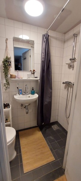 Ik woon al jaren met plezier in mijn kleine studio. Het is klein, maar praktisch ingericht. Daarnaast heb ik een opklapbaarbed wat overgenomen kan worden. Hierdoor heb je meer leefruimte. De badkamer is klein, maar heeft een fijne douche. Ook is er een aparte ruimte waar je een wasmachine kwijt kunt. Ik heb een kleine binnentuin, waardoor je ook buiten kunt zitten en in de centrale hal is een kleine nis waar je ook nog spullen kunt opslaan. Mijn woning ligt in de bruisende Jordaan op loopafstand van de Noordermarkt op zaterdag. Doordat het in een rustige straat is, merk je niet dat je in de binnenstad woont. Ook qua omgevingsgeluid valt het erg mee. In de buurt heb je alle voorzieningen: supermarkten, leuke cafe's en fijne restaurants. Ook heb je meerdere supermarkten en het OV in de buurt. Vergeet niet het Westerpark waar je kunt wandelen of chillen. Het heeft de ideale ligging! Ik hoop dat ik iemand/een stel net zo blij kan maken met deze unieke parel als dat ik hier jaren gewoond heb!